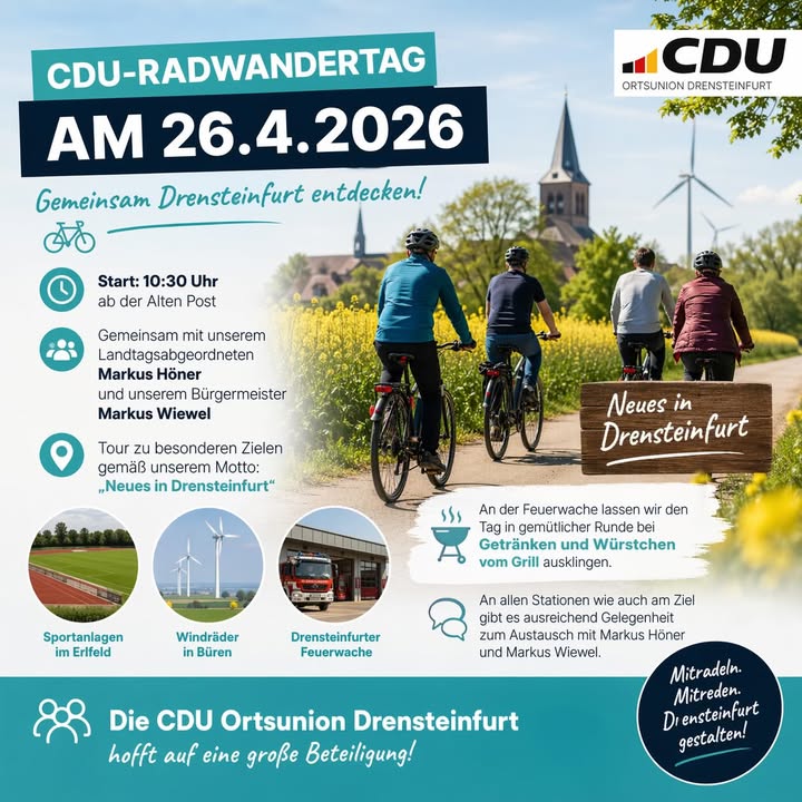 schön, dass Du auf unserer Internetseite vorbeischaust und Dich für die Politik der CDU-Familie in Drensteinfurt, Rinkerode und Walstedde interessierst.