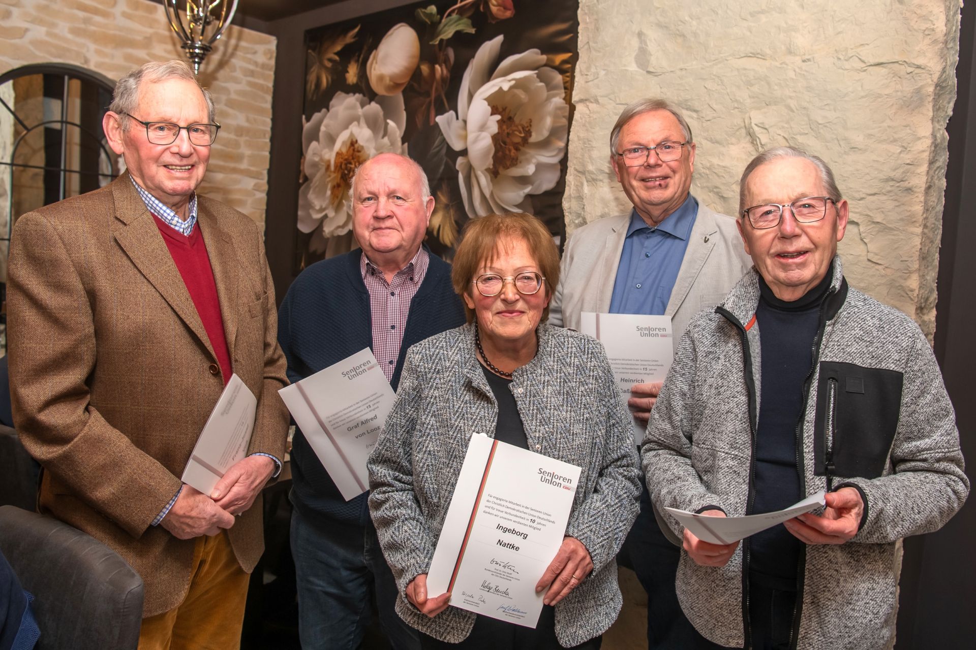 Nachfolgerin wurde Doris Asbrand. Bei den anderen Posten gab es kaum Veränderungen. Stellvertretende Vorsitzende bleiben Bernhard Stückmann und Bernhard Krellmann. Schriftführer bleibt Thomas Volkmar. Zu Beisitzern wurden Christiane Paschko, Ludger Wiewelhove, Dr. Birgit Salomon, Alfred Graf von Looz, und Josef Waldmann. Neu dabei ist Joachim Dittrich. Auch Ehrungen für 20 und 15 Jahre Mitgliedschaft standen auf der Tagesordnung. Werner Wiewel wurde für 20 Jahre, Alfrd Wimber, Alfred Graf von Looz, Heinrich Gaßmöller, und Franz-Josef Voß für 15 Jahre und Ingeborg Nattke für 10 Jahre geehrt. Als Gast war der Seniorenbeauftragte der Stadt, Rüdiger Pieck, eingeladen. Dieser Posten wurde im Jahre 2021 aufgrund eines Antrages der Seniorenunion eingerichtet. Pieck berichtete über sein Arbeit im Kulturbahnhof und über die vielen Aktionen und Aktivitäten für Senioren. Besonders die Themen Alleinsein und Einsamkeit stehen bei seiner Arbeit im Blickpunkt. Zum Abschluss der Veranstaltung lud Frau Dr. Birgit Salomon noch zu einem kleinen Imbiss. Alles in Allem eine sehr gelungene Veranstaltung die auch zeigt, dass das Interesser der Senioren an der Politik vor Ort groß ist.